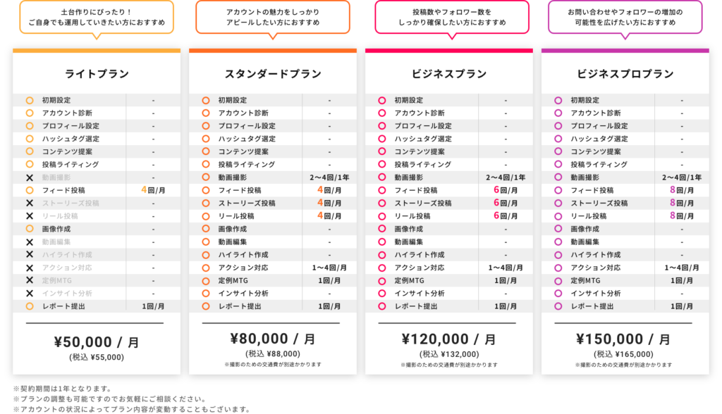 Instagramの運用代行を提供している会社では、様々なプランを用意しています。
